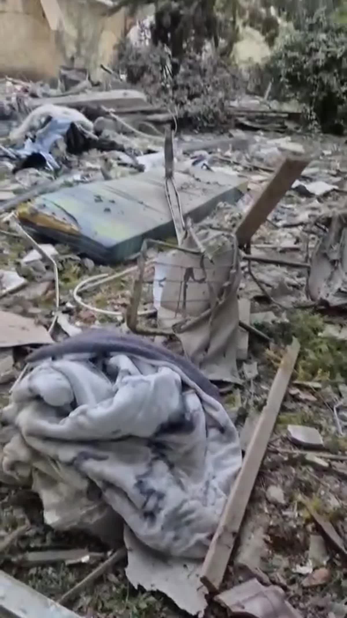 أظهر فيديو حجم الدمار الذي لحق بالمبنى الذي أصابه صاروخ، من دون ورود تفاصيل إضافية.