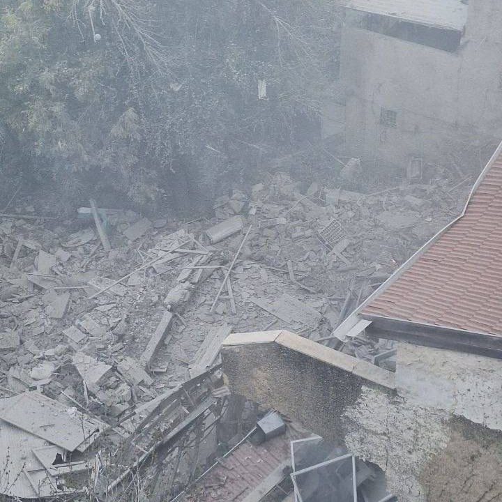 أظهر فيديو حجم الدمار الذي لحق بالمبنى الذي أصابه صاروخ، من دون ورود تفاصيل إضافية.