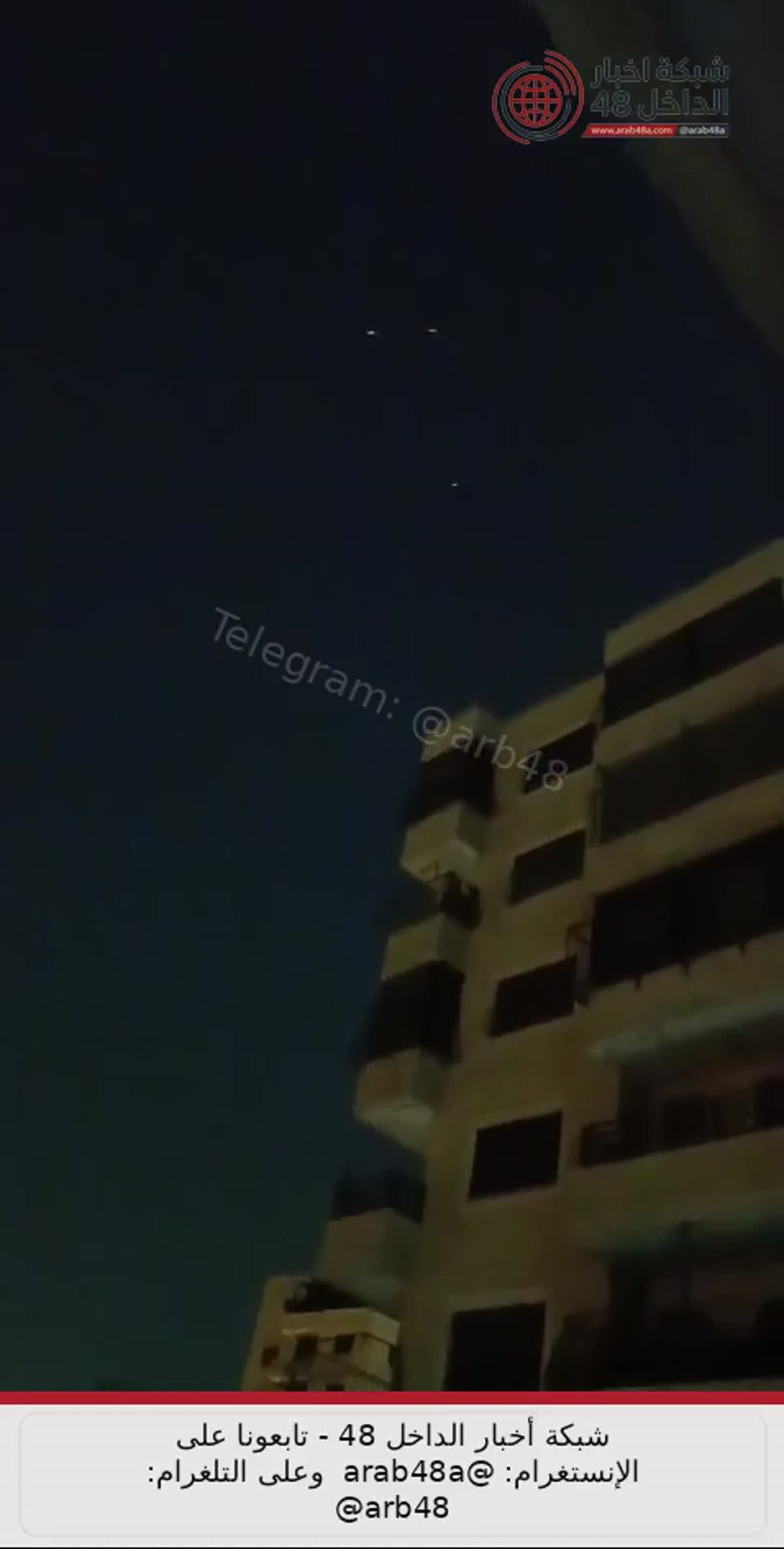 أفاد مراسل شبكة أخبار الداخل 48 برصد صاروخ في طريقه إلى مركز البلاد، مع نشر فيديو من سماء كفر عقب يوثق المشهد.