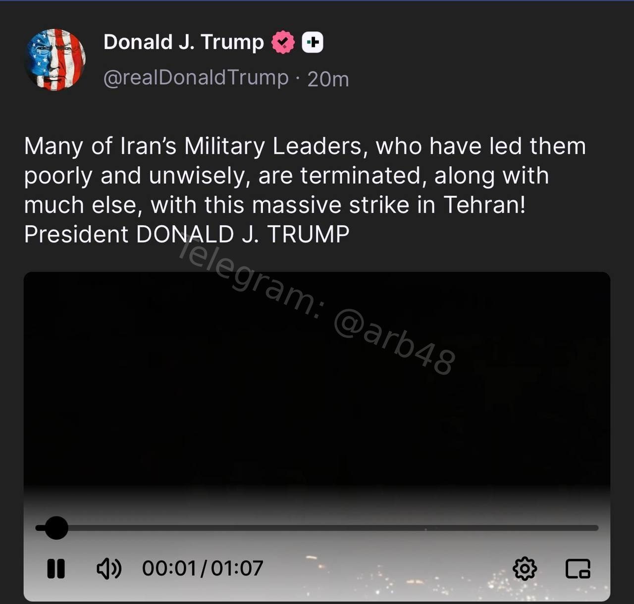قال الرئيس الأميركي دونالد ترامب إن الجيش الأميركي نفّذ ضربة صاروخية على طهران تم خلالها اغتيال العديد من القادة الإير...